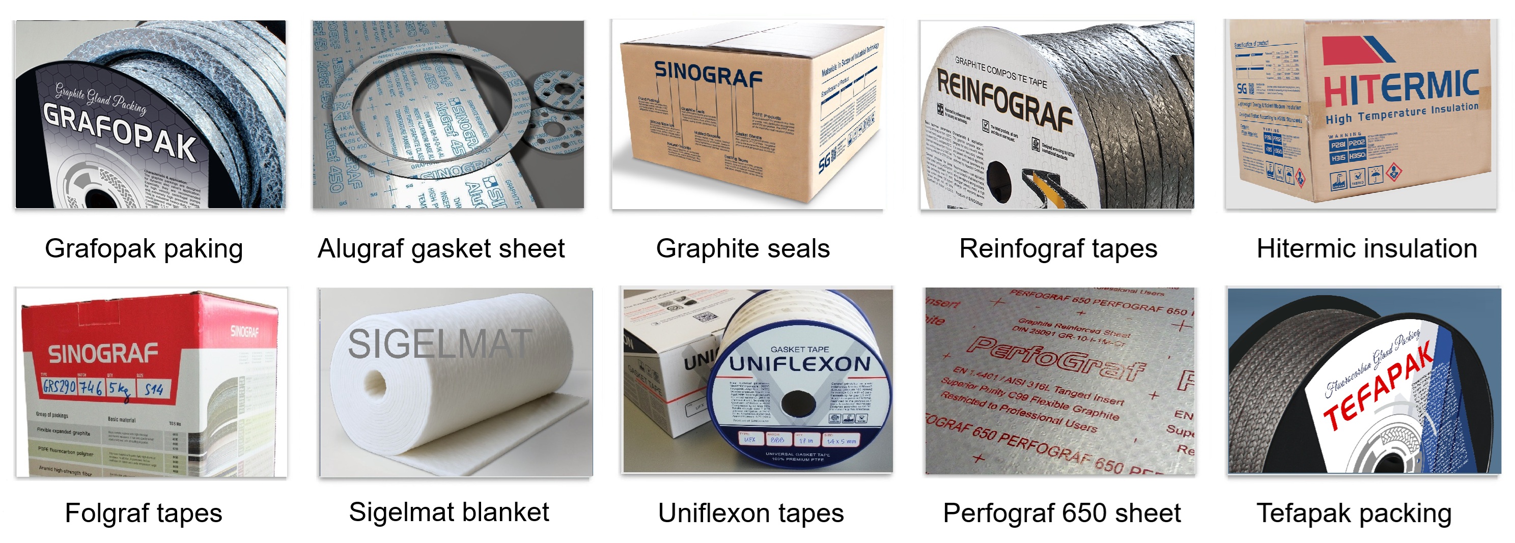 Uszczelnienia techniczne na bazie grafitu, PTFE, miki, włókien aramidowych i węglowych.